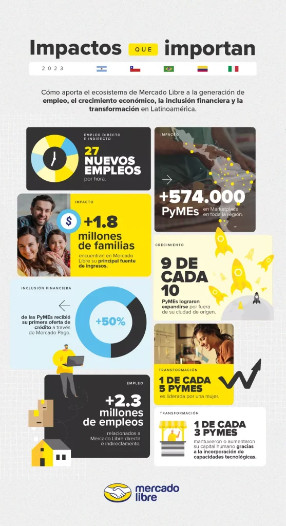 En los últimos dos años, Mercado Libre generó 27 nuevos empleos por hora en la región, se consolidó como principal fuente de ingresos de 1.858.528 familias de Latinoamérica y superó las 574.000 PyMEs que venden en el marketplace y además utilizan Mercado Pago, lo que representa un 11% más.